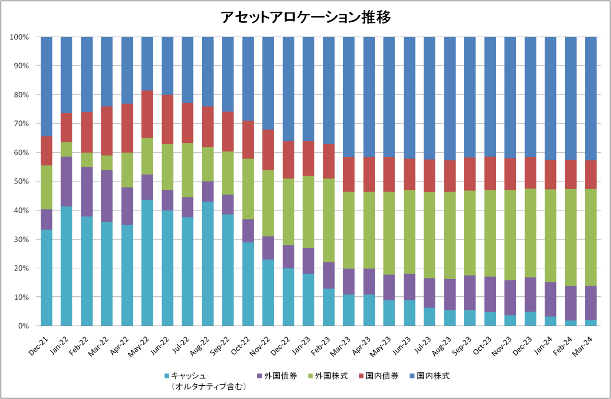 今週は今後の金融政策の大きな判断材料となるCPIを控えボラタイルな展開となりそうですが、IDECOのポジションを使い外国株式の比率を削減していく予定です。